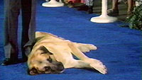 comes time to clear the area, Marlowe decides to lay down and doesn't want to budge. As the onlookers titter, Rick finally gets Marlowe out of the competition arena.