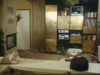 Dobermans on them. They head up a tree until Rick pulls a sonic rodent repellent out of his pocket. The shrill sounds scares off the dogs and the Simons go off in hot pursuit of the bad guys.