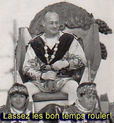 celebrity float person, pronounced the unofficial Mardi Gras slogan -- Laissez les bon temps rouler (''Let the good times roll'') -- with a flawless ''New Awlins'' accent.